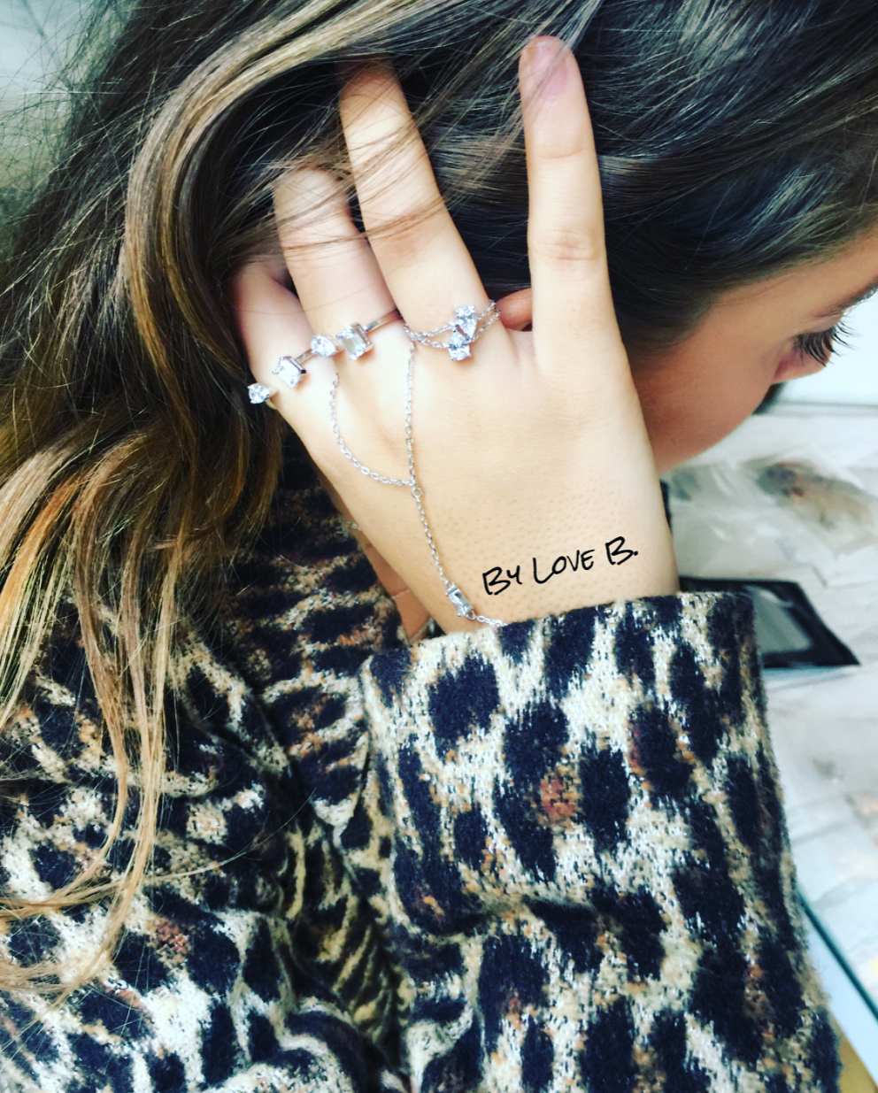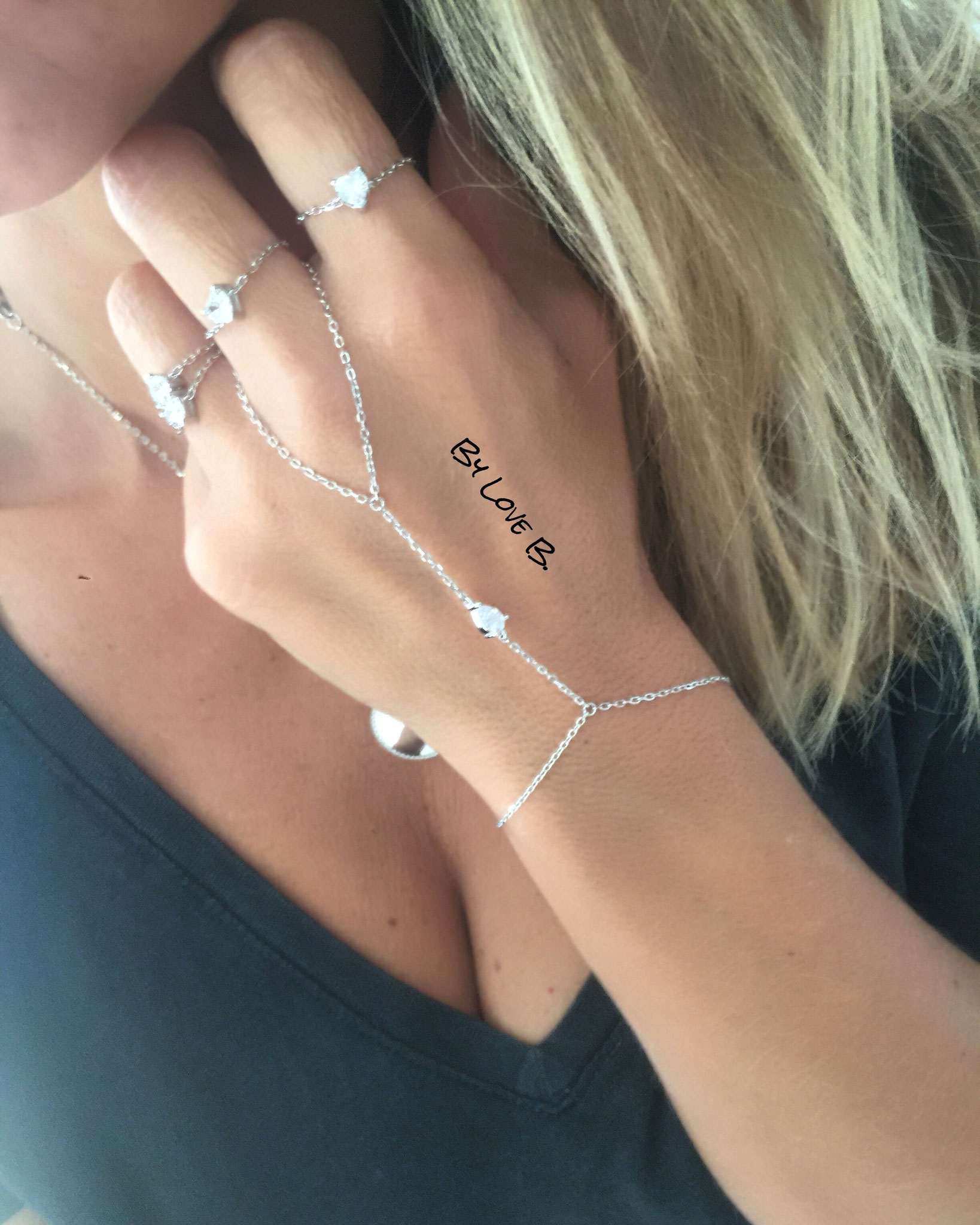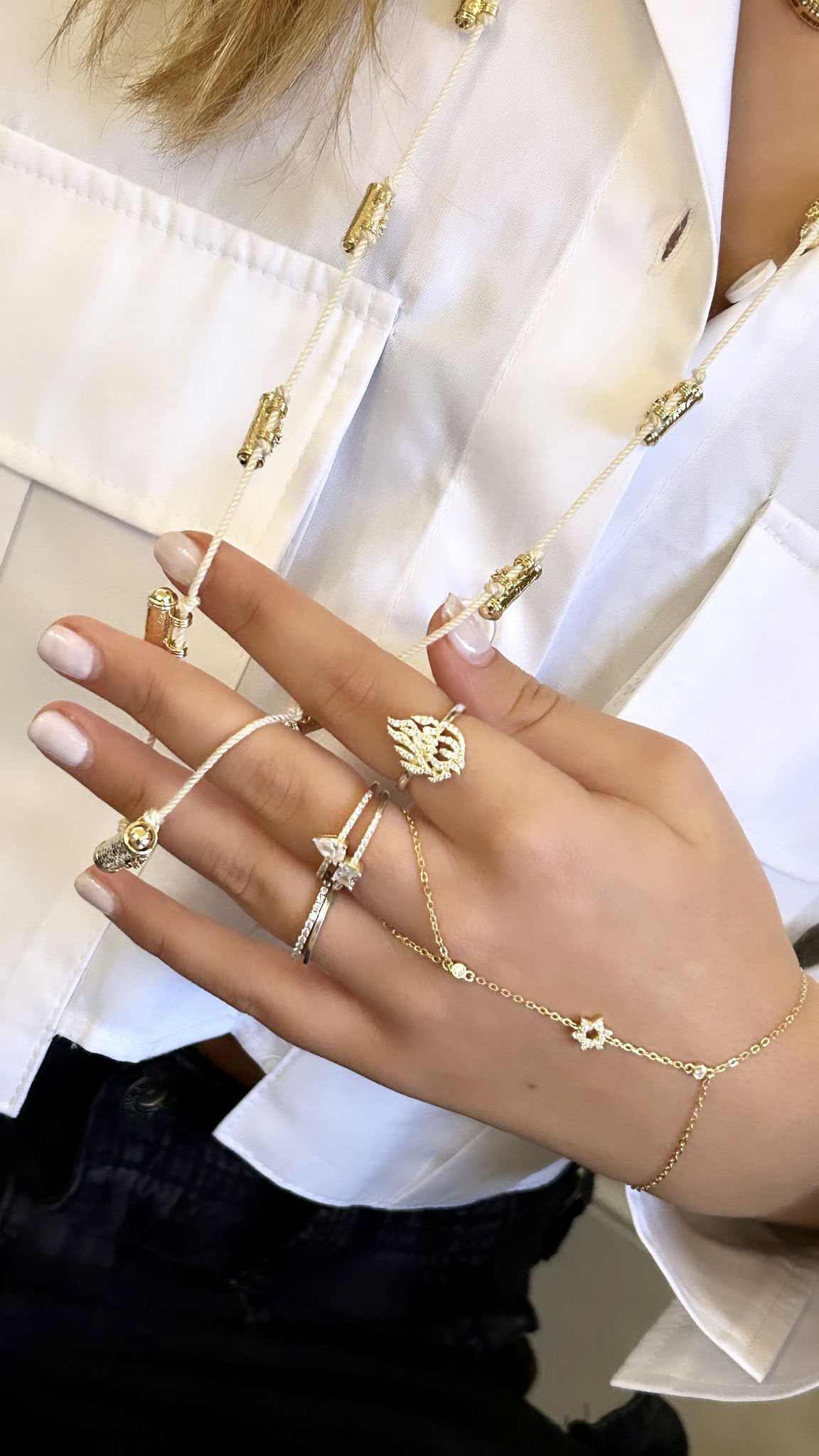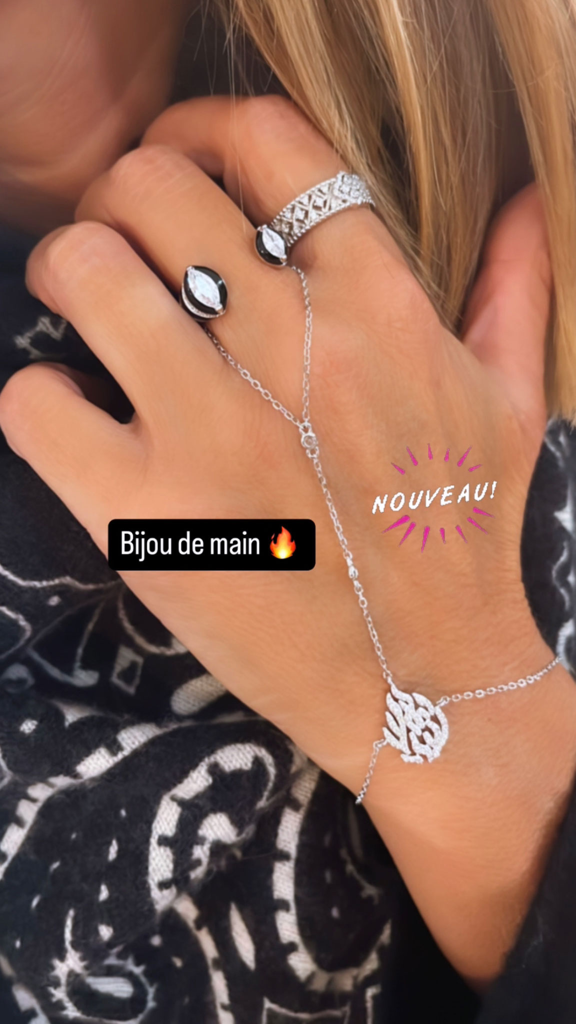 Bijou de main en argent 925 ou plaqué or jaune au choix, orné de zirconium.