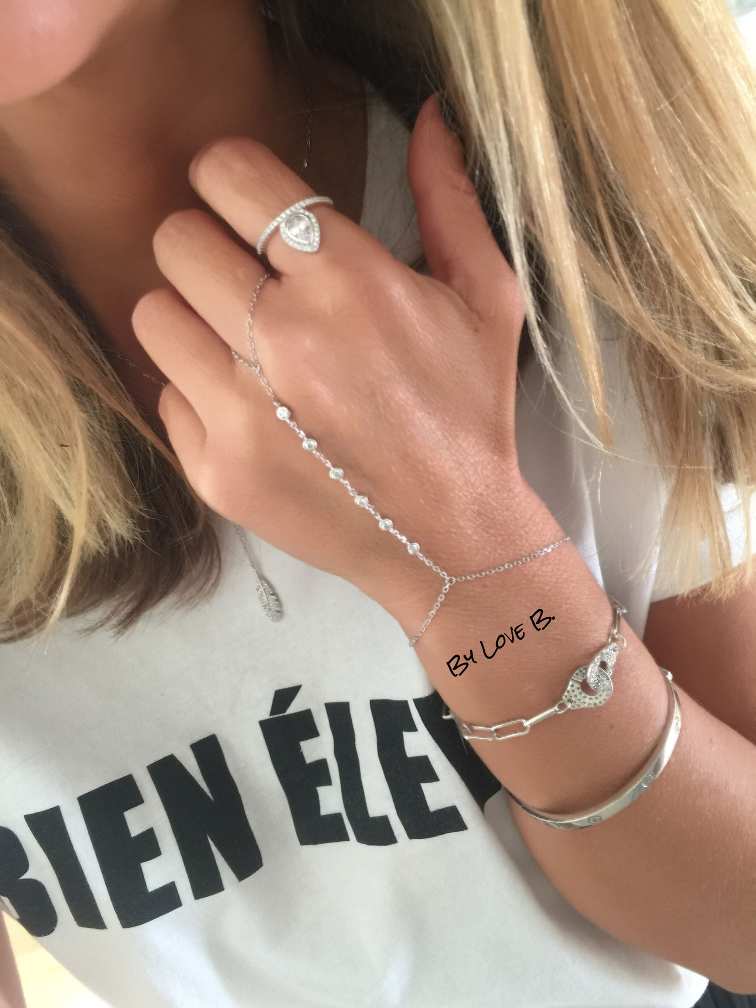 Bijou de main en argent 925 ou plaqué or jaune au choix, orné de zirconium sur tout le bracelet !!!