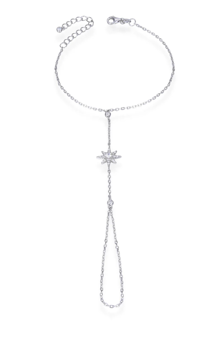 Bijou de main en argent 925, le flocon est serti de zirconium.