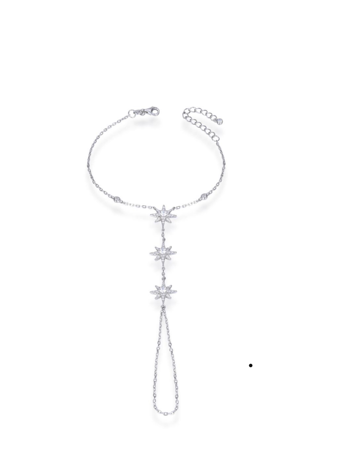 Bijou de main en argent 925, les 3 flocons sont sertis de zirconium.